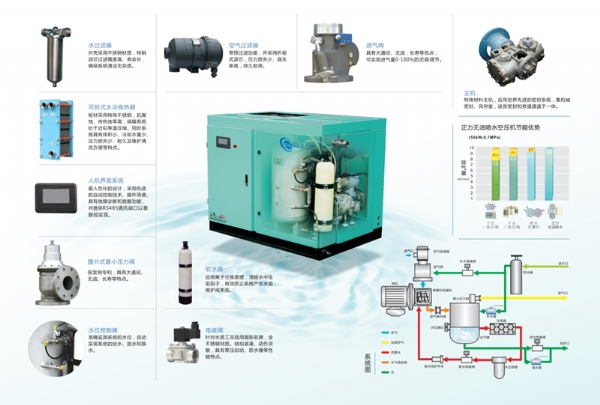 正力精工无油喷水单螺旋杆空压机